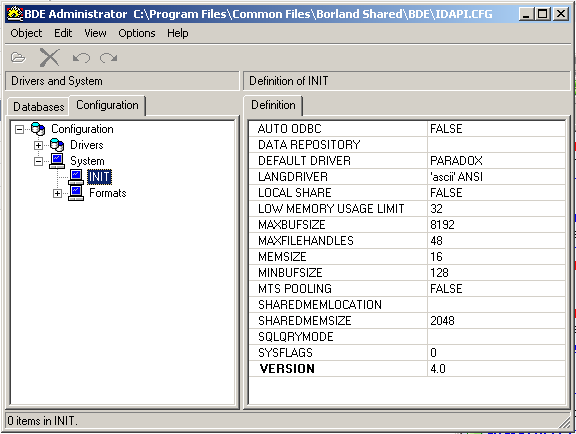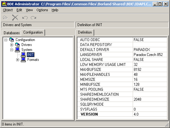 BDE klient se typicky instaluje do adresáře C:\Program Files\Common Files\Borland Shared\BDE\, jeho konfigurační soubor je idapi.cfg.