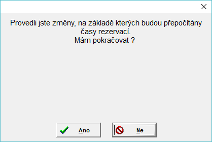 Pokud se přepočet bude provádět, uživatel je na toto upozorněn hláškou společně s dotazem, zda si přeje pokračovat. Pokud souhlasí, záznam se uloží a poté se provede přepočet. Pokud nesouhlasí, záznam zůstane v editačním režimu.