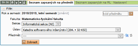 - zobrazovat studenty zapsané předběžně a závazně na vybraný předmět