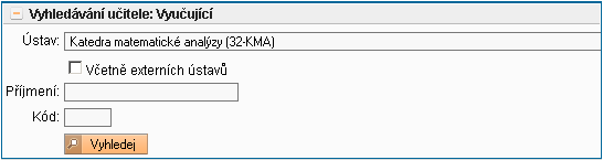 - Vyučující - výběr či změna konkrétního vyučujícího