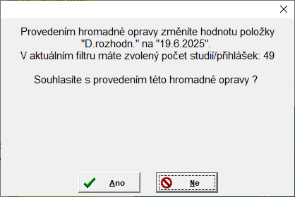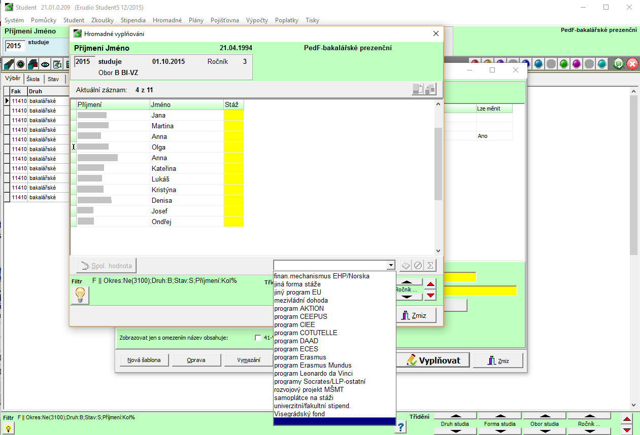 IS STUDIUM » Hromadné operace » Hromadné vyplňování údajů » Vyplňování údajů