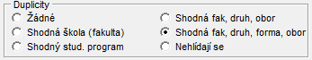 - shodná fak, druh, forma, obor - uchazeč nemůže podat dvě přihlášky ke studiu na jedné fakultě pro shodný druh a obor studia a stejnou formu