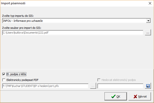 - možno přidat elektronický podpis/zaheslovaný el.podpis