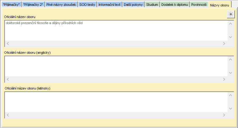 - U nematričních oborů lze doplnit český a anglický název z číselníku "Programy CŽV" přes tlačítko-sluníčko v pravém horním rohu záložky.