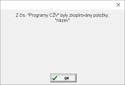 - Pro přehlednost program uživateli oznámí, jaké položky byly z čís. "Programy CŽV" zkopírovány. Nebo, že nebyl nalezen vhodný záznam.
