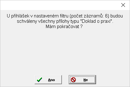 Volbou Hromadné / Přílohy - schválení příloh se projdou přílohy zvoleného typu a neschválené přílohy se schválí.