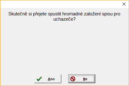 - v menu "Hromadně\Hromadné zpracování spisové služby\Založení spisu" je hromadné provedeni akce, popsané v předchozím bodu, pro všechny vyfiltrované uchazeče.