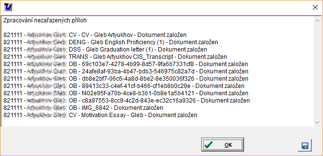 - automaticky se zpracují všechny přílohy daného uchazeče.