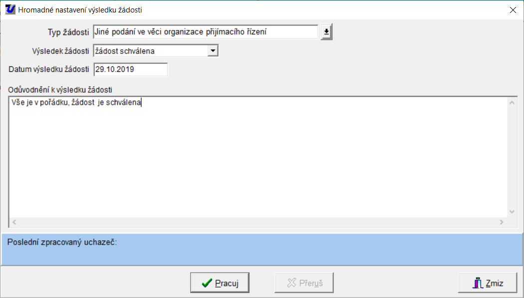 Uchazeč » Uchazeč » Žádosti - Hromadné nastavení výsledku