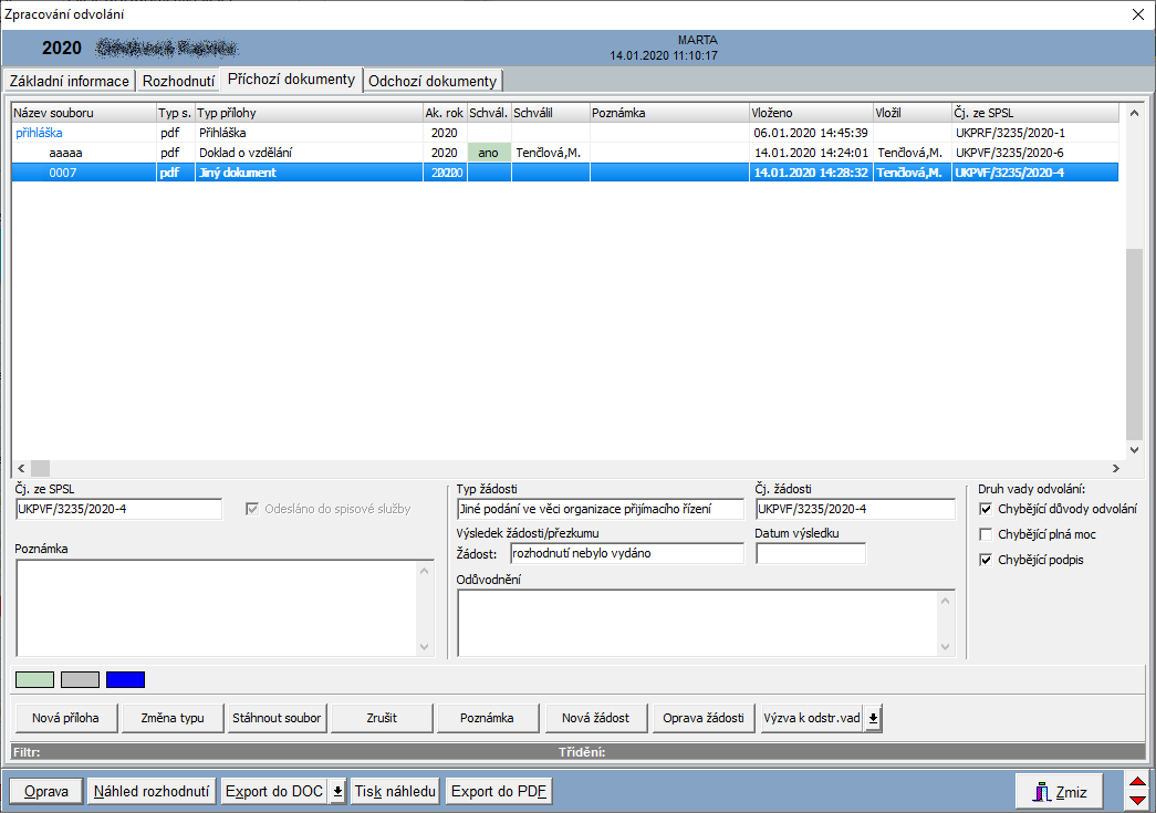 Uchazeč » Uchazeč » Odvolávání » Detail jednotlivého odvolání » Příchozí dokumenty