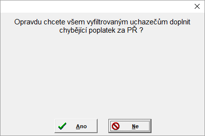 - v případě, že vyfiltrovaná přihláška již poplatek za přijímací řízení vygenerovaný má, program na tuto skutečnost upozorní: