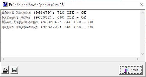 - po vygenerování poplatků se zobrazí přehled vygenerovaných poplatků, který je možno ikonkou