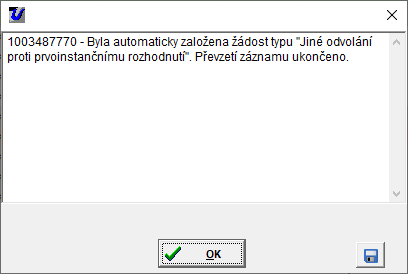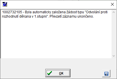 Převzetí odvolání popisuje kapitola Žádost "Odvolání proti rozhodnutí o přijetí".