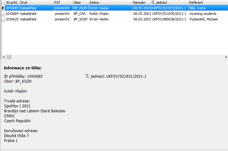 Pokud má uchazeč v přihlášce zadanou i doručovací adresu, zobrazují se obě.