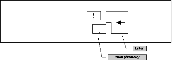 Poznámka: Obvykle budete mít při psaní klávesnici nastavenou v režimu české klávesnice. Připomeňme, že i v tomto režimu je možné psát přehlasované samohlásky ö, ä, ü. Ťuknete na klávesu vlevo od klávesy Enter (viz např. stylizovaný obrázek) a poté napíšete příslušnou samohlásku. Konkrétní označení a poloha této klávesy závisí na typu klávesnice, kterou používáte.