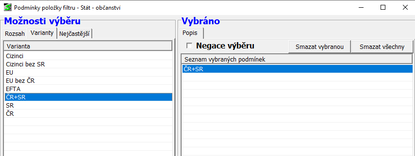 - najdete řádek Stát - občanství a dvojitým kliknutím aktivujete okno pro specifikaci podmínky
