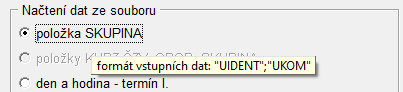 Volba Místnost - uživatel zaškrtne, bude-li se načítat soubor obsahující i kód místnosti.