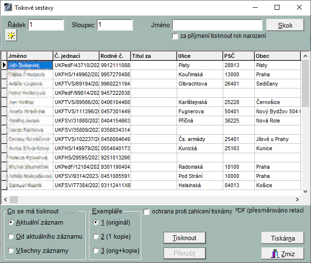Je třeba provést volbu jakou adresu tisknou, zda trvalou nebo kontaktní.