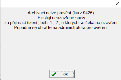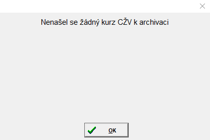 Pokud se žádný akad. rok s kurzy k archivaci nenajde, program to oznámí a okno "Archivace uchazečů kurzu CŽV" se neotevře.