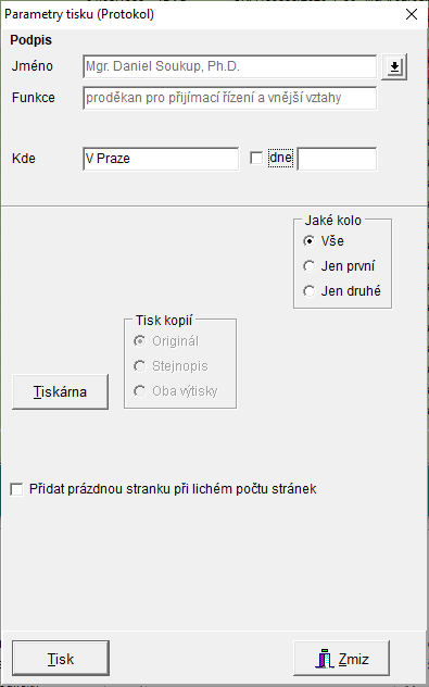 Uchazeč » Uchazeč » Další možnosti z menu Uchazeč » Tisk protokolu (pro LFHK a FF UK)