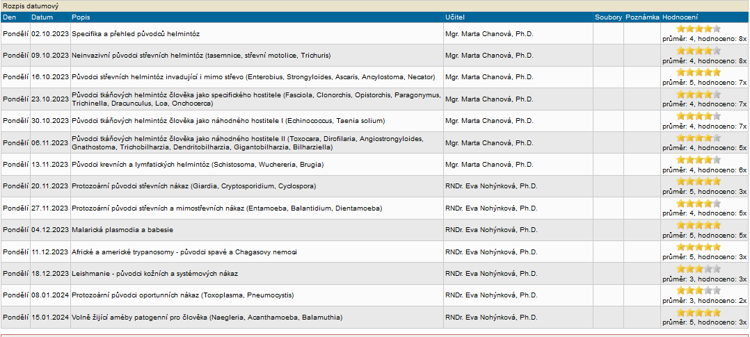 Předměty Online - rozpis výuky » Výběr a přehled předmětů » Hodnocení rozpisu