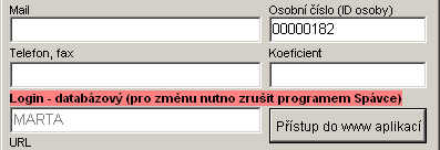 Pokud je vyplněno osobní číslo (ID osoby), není možné upravovat login. (pouze UK)