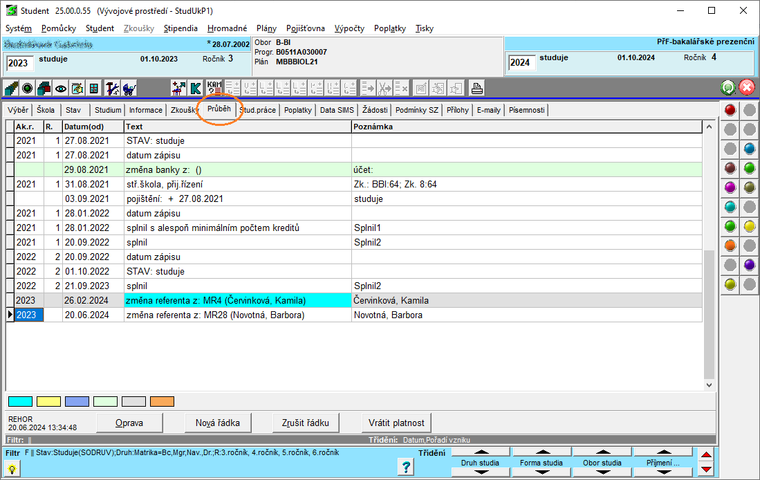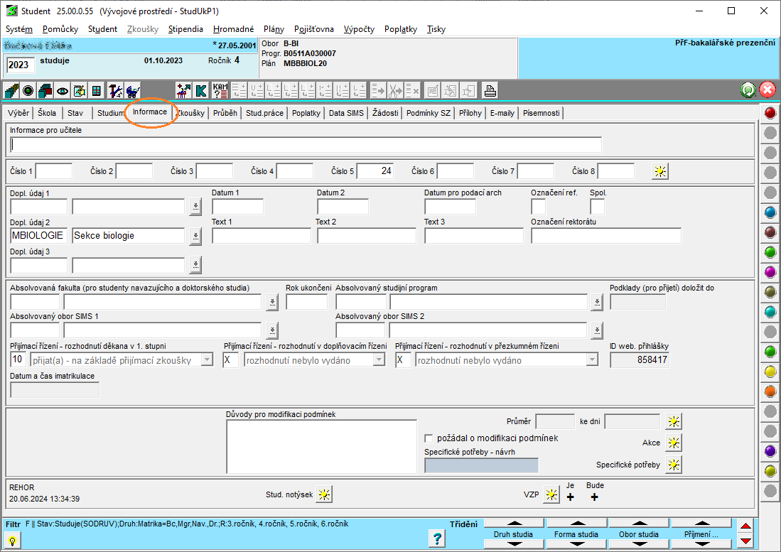 - studijní oddělení musí u každého studenta posoudit, zda splnil podmínky pro postup do dalšího školního roku a připravit jeho studijní údaje pro příští školní rok 2002