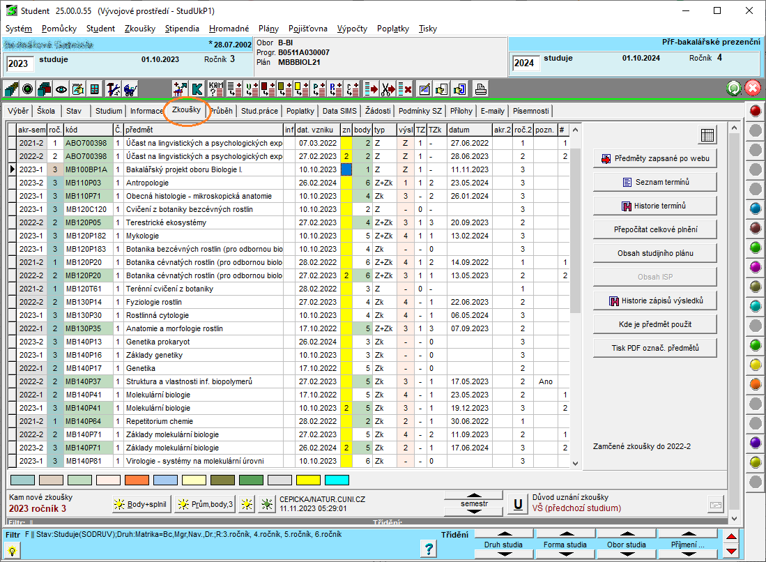 Pokud studijní oddělení potřebuje přehled o studijních povinnostech, najde je na stránce Zkoušky: