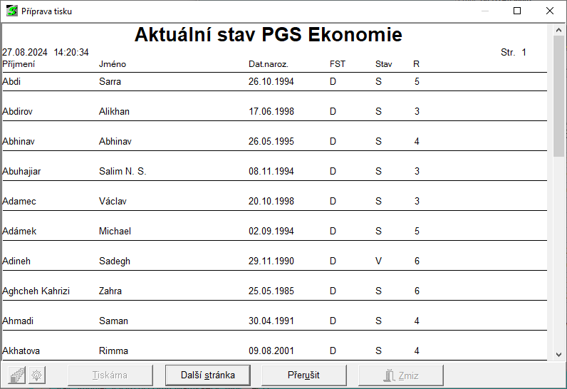 - poté lze spustit vlastní tisk na tiskárně např. volbou Grafický tisk nebo se podívat na ukázku výstupní sestavy volbou Grafická ukázka