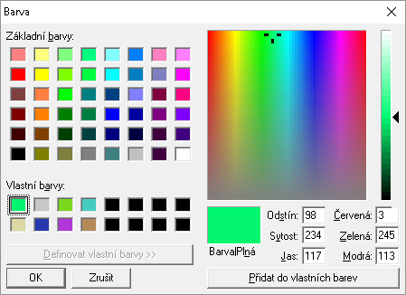 Je možno vybrat ze Základních barev nebo Definovat vlastní barvy.