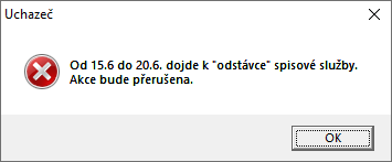 Speciální funkci má aktualita pro modul "Spisová služba" (spisovka). Při její platnosti se nejen zobrazí aktualita, ale zároveň budou zablokovány veškeré operace programu Uchazeč a Student komunikující se spisovou službou (zakládání spisu, nová žádost, nová písemnost, vypravení existující písemnosti atd...)