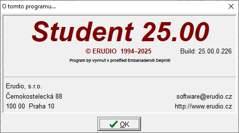 Zobrazí se informace o verzi programu a kontaktní údaje firmy Erudio