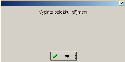 Kliknutím na OK vezmete hlášení na vědomí a vrátíte se do formuláře na místo, kde vznikla chyba.