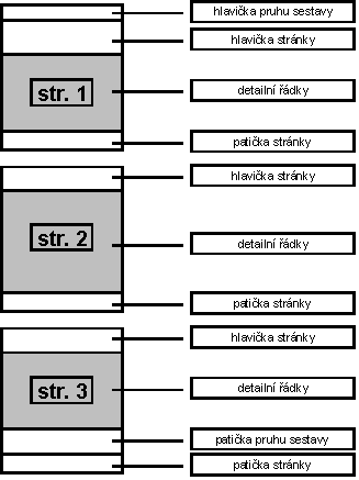 - pruh stránky - obsahuje údaje, které se objeví v hlavičce každé stránky nebo v patičce každé stránky tiskové sestavy, do hlavičky nebo patičky se umísťuje např. číslo stránky, datum, apod.