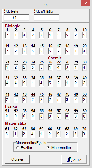Poznámka: Není-li položka vyplněná, znamená to, že uchazeč tuto zkoušku nedělal. Je-li v položce 0, pak to znamená, že zkoušku dělal a dosáhl výsledku 0 bodů.