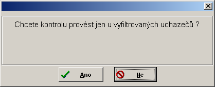 Čísla jednací lze hromadně zkontrolovat volbou Hromadné-Kontrola čísla jednacího. Vyvolá se dotaz, zda se u uchazečů ve filtru má provést kontrola.