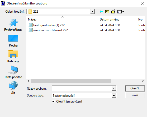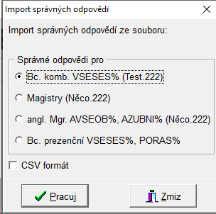 Dále je třeba určit, kde se nachází dbf soubor se správnými odpověďmi.
