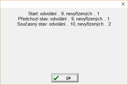 Tlačítkem Přenos se uskuteční přenos nových odvolání z databáze Uchazeč. O výsledku přenosu jsme informování podobnou hláškou: