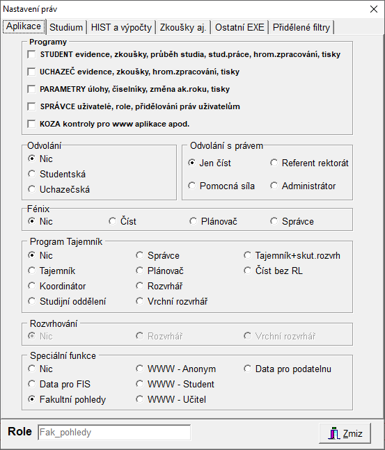 Uživateli, kterému přidělíte tuto roli, nepřidělujte, prosím, žádné další role v SIS.