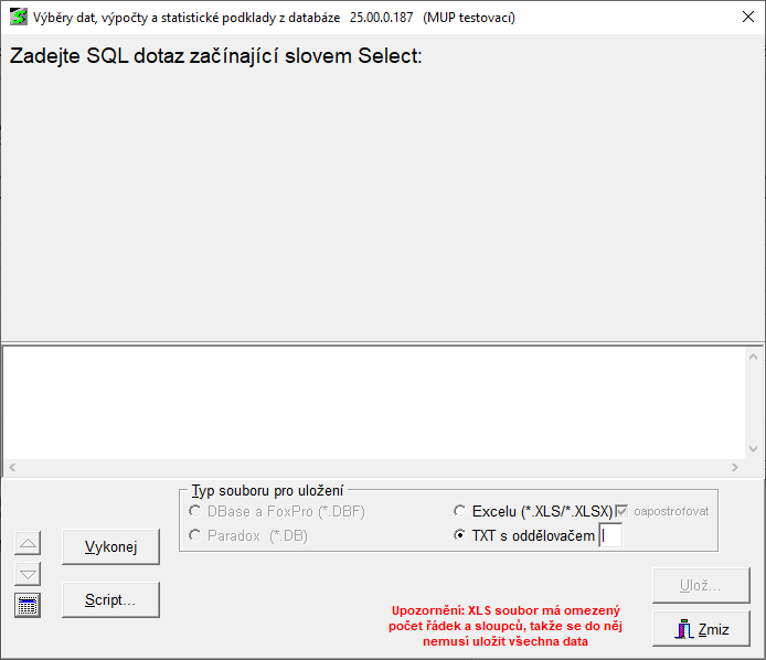 - Script... - načtení SQL dotazu