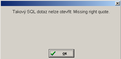 - syntaktická kontrola zadaného SQL dotazu - v případě chyby se zobrazí chybová hláška s konkrétním popisem chyby (viz obrázek níže)