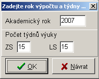 - výpočet: počet hodin týdně * počet týdnů v semestru - výsledek korigován pomocí PFAKTOR