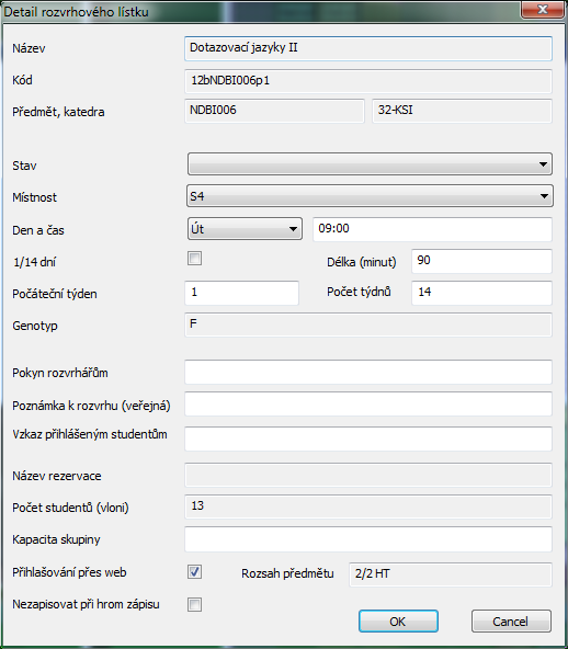 - Poznámka k rozvrhu (veřejná) - veřejná poznámka (např. pro studenty) zobrazená na webu