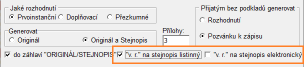 1. "v.r." na stejnopis listinný - použije se v případě generování: