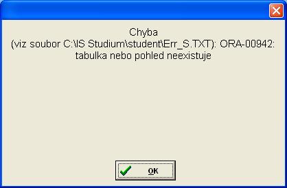 Chybová hláška s cestou k chybovému souboru, např.: Chyba (viz soubor C:\IS Studium\student\err_S.TXT)