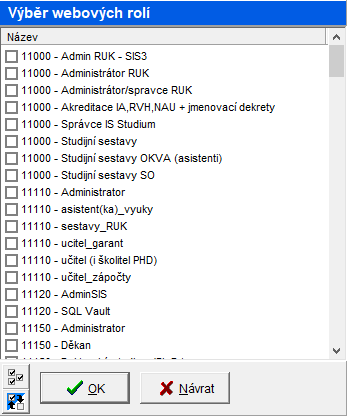 - Role se zobrazují ve formátu: kód fakulty - název role