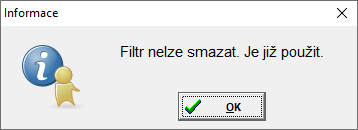 Pokud je daný filtr použit v šablonách nebo v dotazníku, nelze tento filtr smazat.