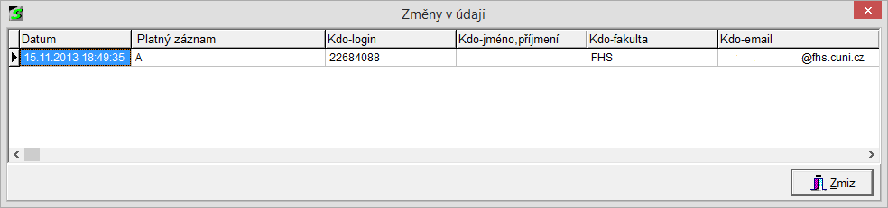 Historii položek lze zobrazit dvojklikem na název položky, u čekboxů (zaškrtávátek) dvojklikem na