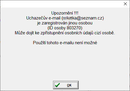 - 2. E-mail není dosud nikým evidován jako registrační a nepoužívá ho ani jiný uchazeč či student.