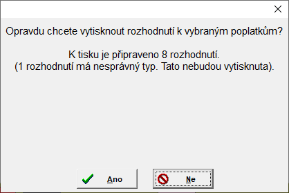 - poplatky, které mají vygenerované a již vypravené rozhodnutí se při generování přeskočí